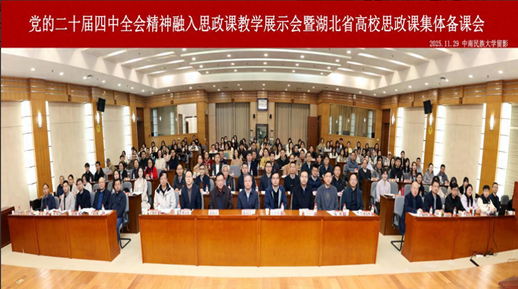 11月29日,“党的二十届四中全会精神融入思政课教学展示会暨湖北省高校思政课集体备课会”在中南民族大学举办。省教育厅思政处处长张彦昌,中南民族大学党委书记徐业勤,党委常委、副校长马玉堂出席,该校党委宣传部、本科生院等部门及20余所高校的专家学者和师生代表、媒体代表100余人参会。开幕式由马玉堂主持。