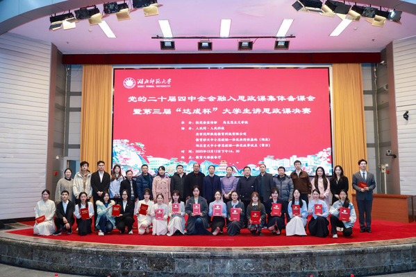据悉,自首届赛事创办以来,“达成杯”大学生讲思政课竞赛已成为学校思政课实践育人的特色品牌,更是推动党的创新理论进校园、进课堂、进头脑的重要载体。三年来,赛事影响力持续提升,在赛事的锤炼与滋养下,一批优秀思政教育骨干师生脱颖而出、屡获佳绩。本届活动深度聚焦“党的二十届四中全会精神融入思政课教学”核心主题,以强有力的思政引领赋能高质量人才培养,为推进大中小学思政课一体化建设、深化立德树人综合机制改革试点院系建设,贡献了湖师智慧与实践力量。