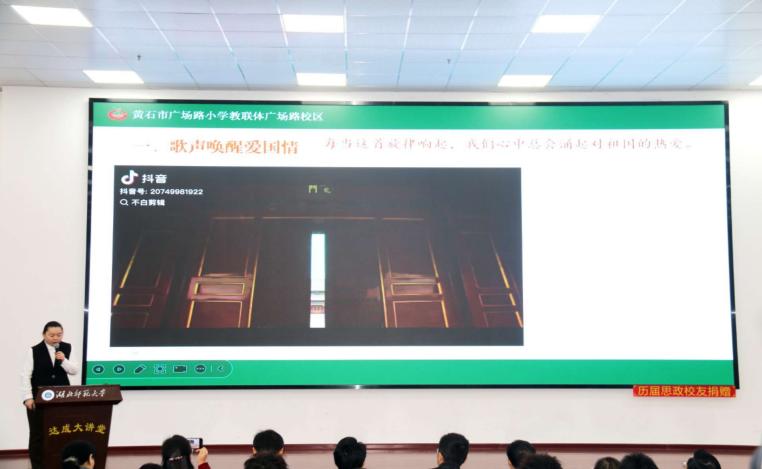 随后,大中小学思政课一体化教学展示环节有序开展。展示按“小学—初中—高中—大学”学段依次推进,教师们围绕“爱国主义”主题开展现场教学:黄石市广场路小学曾莹带来《天下兴亡 匹夫有责》,第十六中学胡蝶讲授《以爱国主义为核心的民族精神》,第七中学熊星呈现《精神铸舰,血脉赋能——福建舰,驶向民族复兴的钢铁巨澜》;太阳成集团tyc122ccvip教师陈智会、22级思政专业学生黄良涛分别以《“爱国三问”的新时代之答》《以行动护统一,以同心筑团结——新时代大学生的爱国答卷》为题展示。各学段教学既彰显学段特色与育人理念,又实现教学目标精准定位与育人要求梯度提升。