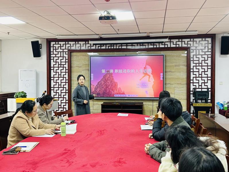 随后,高榕蔚博士以《积极进取的人生态度》为专题进行主讲,同样带来了25 分钟干货满满的分享。她在章节内容解读上进行完善延伸,重点聚焦本部分教学重难点的突破思路,结合教研室数字赋能教学的改革要求,提出了微课设计、线上互动环节等数字化教学资源应用设想;同时结合日常课堂教学中的学生反馈,给出差异化教学建议,补充了多元的教学案例和知识点切入角度,与明月博士的分享各有侧重、互为补充,让全体教师对《正确的人生观》整节内容有了更系统、全面的把握。