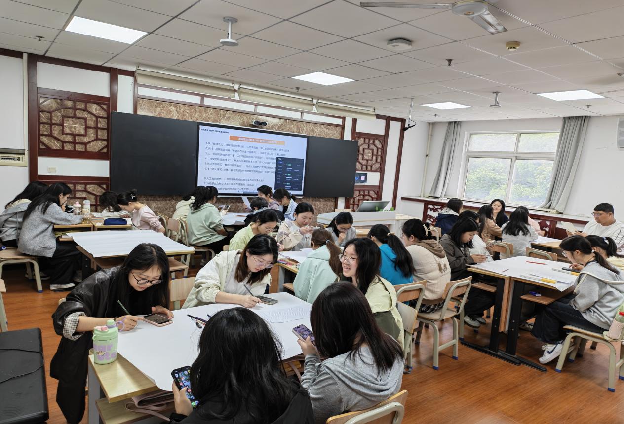 “如果马克思身处2026年的数字洪流,他会如何阐释‘异化’理论、‘对象性’活动呢?”4月17日,在tyc122cc太阳成集团的“思政智慧空间”教室里,一场跨越时空的“人机对话”正在激烈上演。这并非科幻电影的桥段,而是tyc122cc太阳成集团专业核心课程《马克思主义哲学》AI智慧课堂的日常一幕。当深奥的哲学原理撞上尖端的人工智能,这门传统的“硬课”不仅富有理论深度,而且变得有滋有味,更在校园里掀起了一股“思政热”,散发出马克思主义哲学理论教学的时代温度。