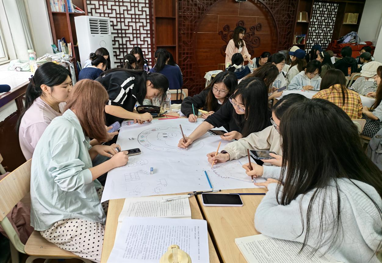 学生们拿起画笔,绘制“哲学之美”画像